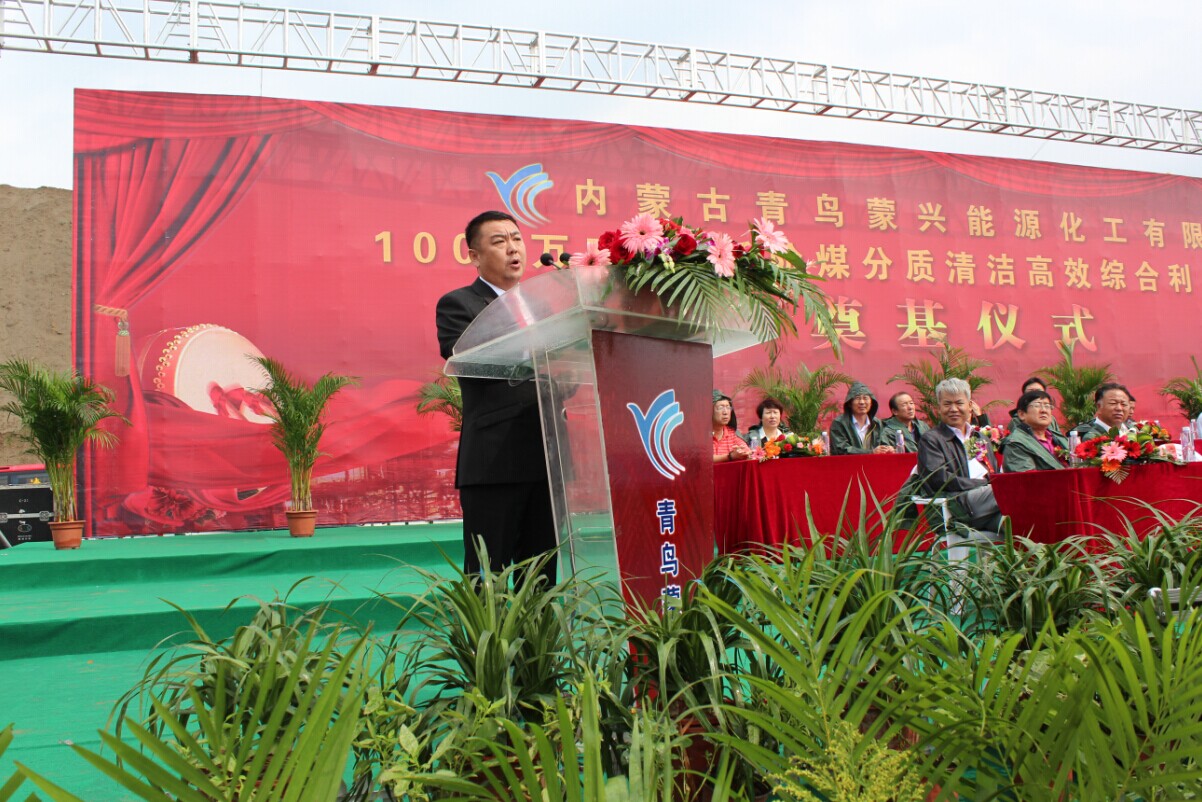 在奠基儀式上,我集團(tuán)公司執(zhí)行董事、內(nèi)蒙古青鳥蒙興能源化工有限公司總經(jīng)理張東代表投資方致辭。他說:我公司《1000萬噸/年低階煤分質(zhì)清潔高效綜合利用示范項(xiàng)目》是一項(xiàng)全新事業(yè)的開始。項(xiàng)目的建設(shè)不僅會促進(jìn)北大青鳥、蒙興集團(tuán)的自身發(fā)展,也必將改善當(dāng)?shù)氐幕A(chǔ)設(shè)施和生態(tài)環(huán)境建設(shè),提高當(dāng)?shù)鼐用竦纳钏剑瑤?dòng)當(dāng)?shù)叵嚓P(guān)產(chǎn)業(yè)的發(fā)展,增加地方財(cái)政收入和就業(yè)機(jī)會,將為地方經(jīng)濟(jì)發(fā)展做出更大貢獻(xiàn)。